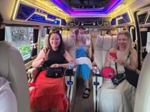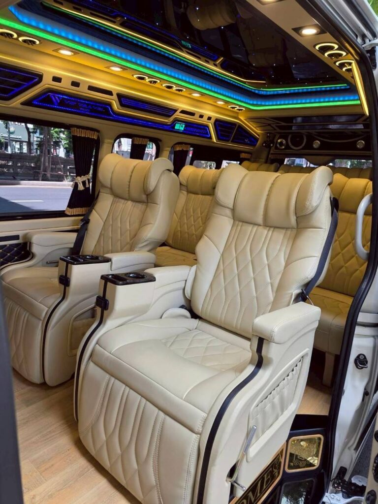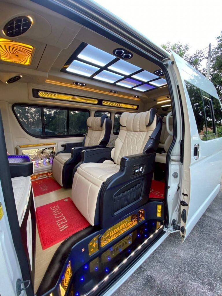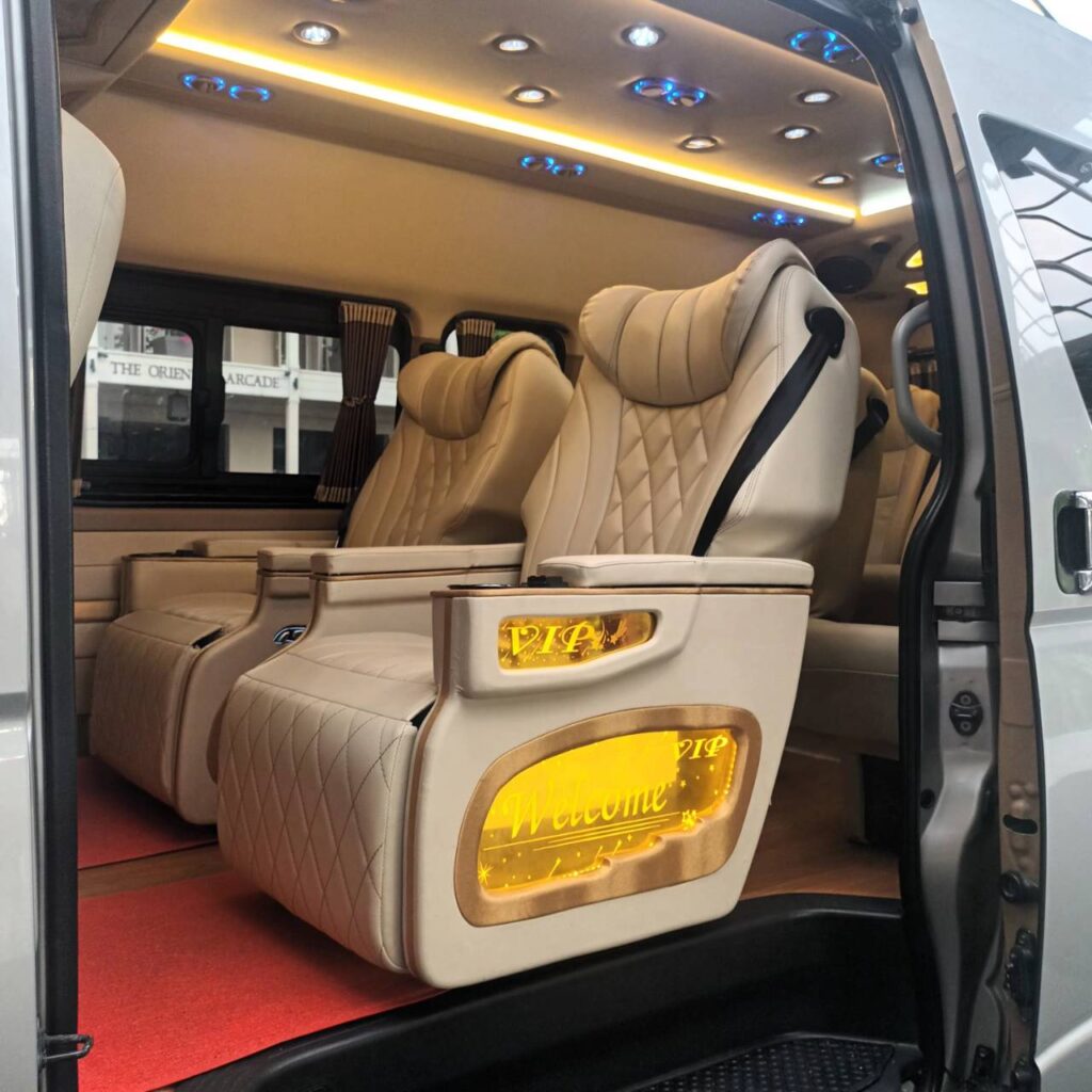 VIP van service, a high-quality van that is fully equipped with in-car amenities such as television, stereo, karaoke, battery charger, large seats, reclining, spacious interior, cool air conditioning